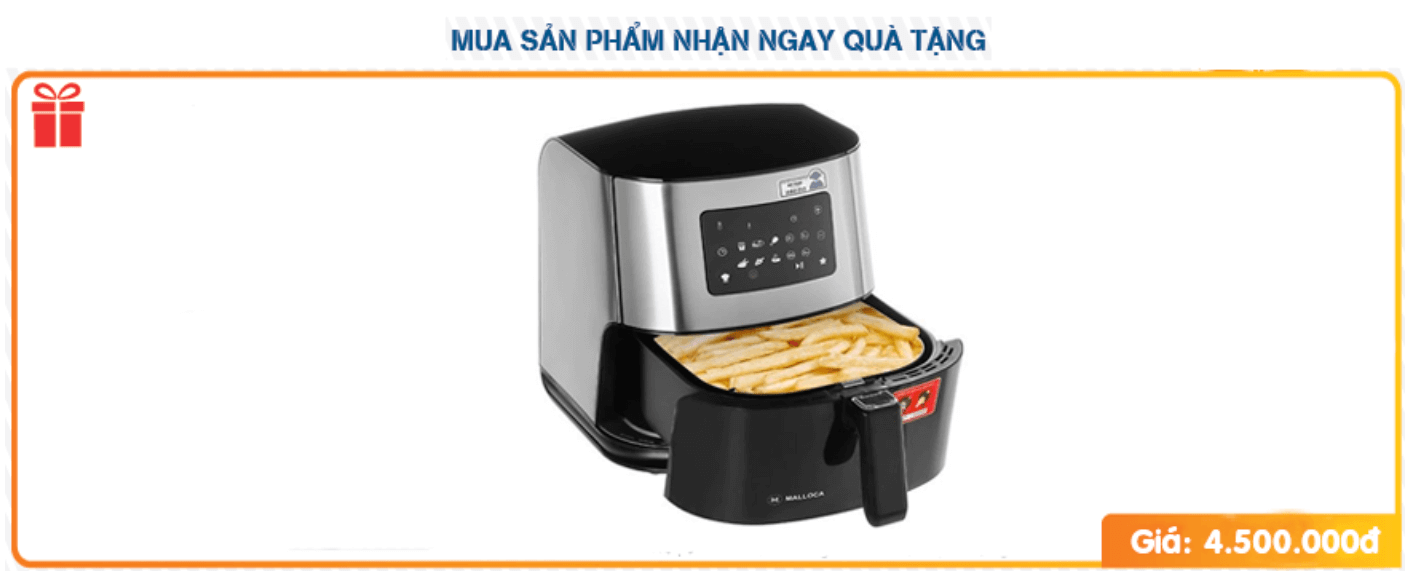 Tặng Thêm : - 01 Nồi chiên không dầu Malloca Trị giá : 4.500.000đ - Lắp đặt miễn phí Toàn Quốc