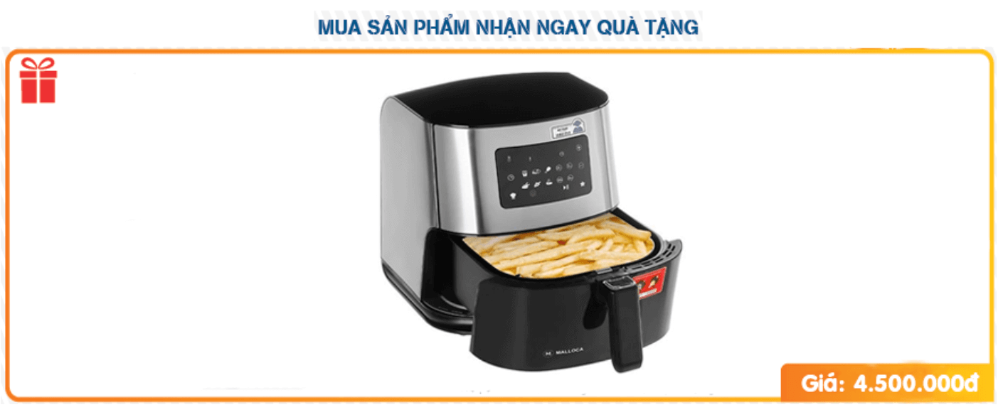 Tặng Thêm : - 01 Nồi chiên không dầu Malloca Trị giá : 4.500.000đ - Lắp đặt miễn phí Toàn Quốc