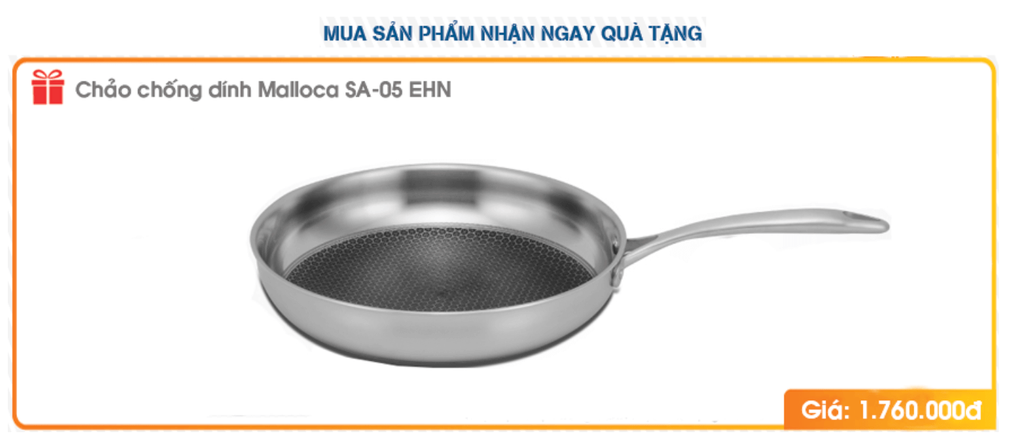 Tặng Thêm : - 01 Chảo chống dính Malloca Trị giá : 1.760.000đ - Lắp đặt miễn phí Toàn Quốc