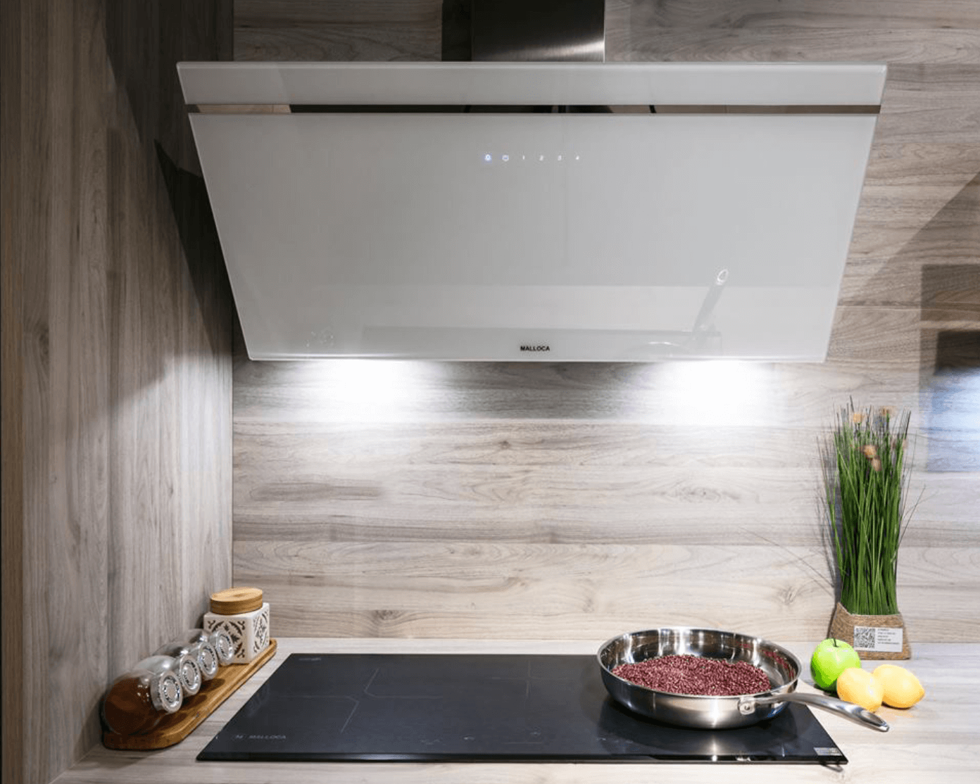 Mẫu máy hút mùi Malloca cao cấp, lắp đặt áp tường hoặc áp tủ bếp kích thước 900mm