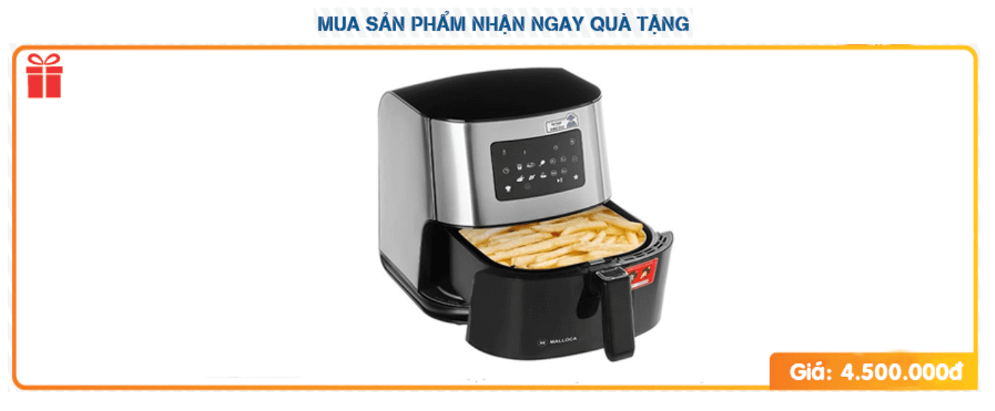 Tặng Thêm : - 01 Nồi chiên không dầu Malloca Trị giá : 4.500.000đ - Lắp đặt miễn phí Toàn Quốc